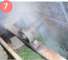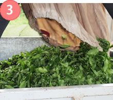 ![]() 揉捻工程です。さらに細かく揉み込みます。 |